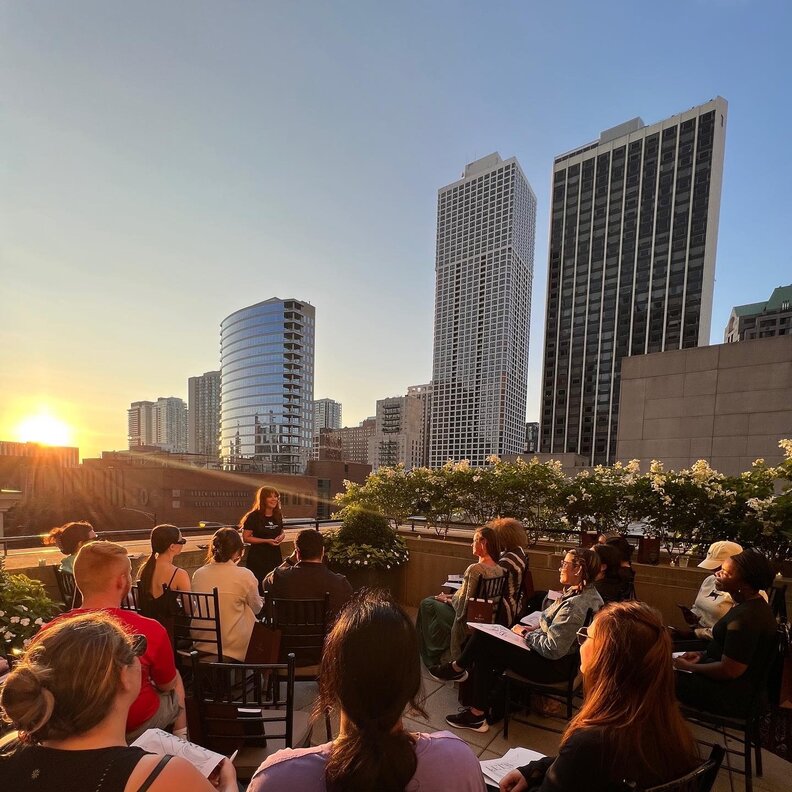 But this terrace where Effie Kalaitzidis led her group wasn’t most places. While you may expect such transcendental offerings at the hotels in cities like Sedona, Arizona—where red rocks lure believers with the promise of reaching higher planes—or Ojai, California, where, nestled in mountain ranges (ojai means “nest,” named by the Chumash Indians), a belief in mysticism is practically a prerequisite, this was held at the very tony, very urban Waldorf Astoria Hotel Chicago. The same Waldorf Astoria with throwback Gilded Age design and rooms that cost upwards of $500 a night. The very one that was recently bestowed a “one key” designation (“a very special stay”) by the fancy new Michelin hotel rankings. The same one in a neighborhood so high end, so luxurious, so rooted in materialism, they call it the Gold Coast.